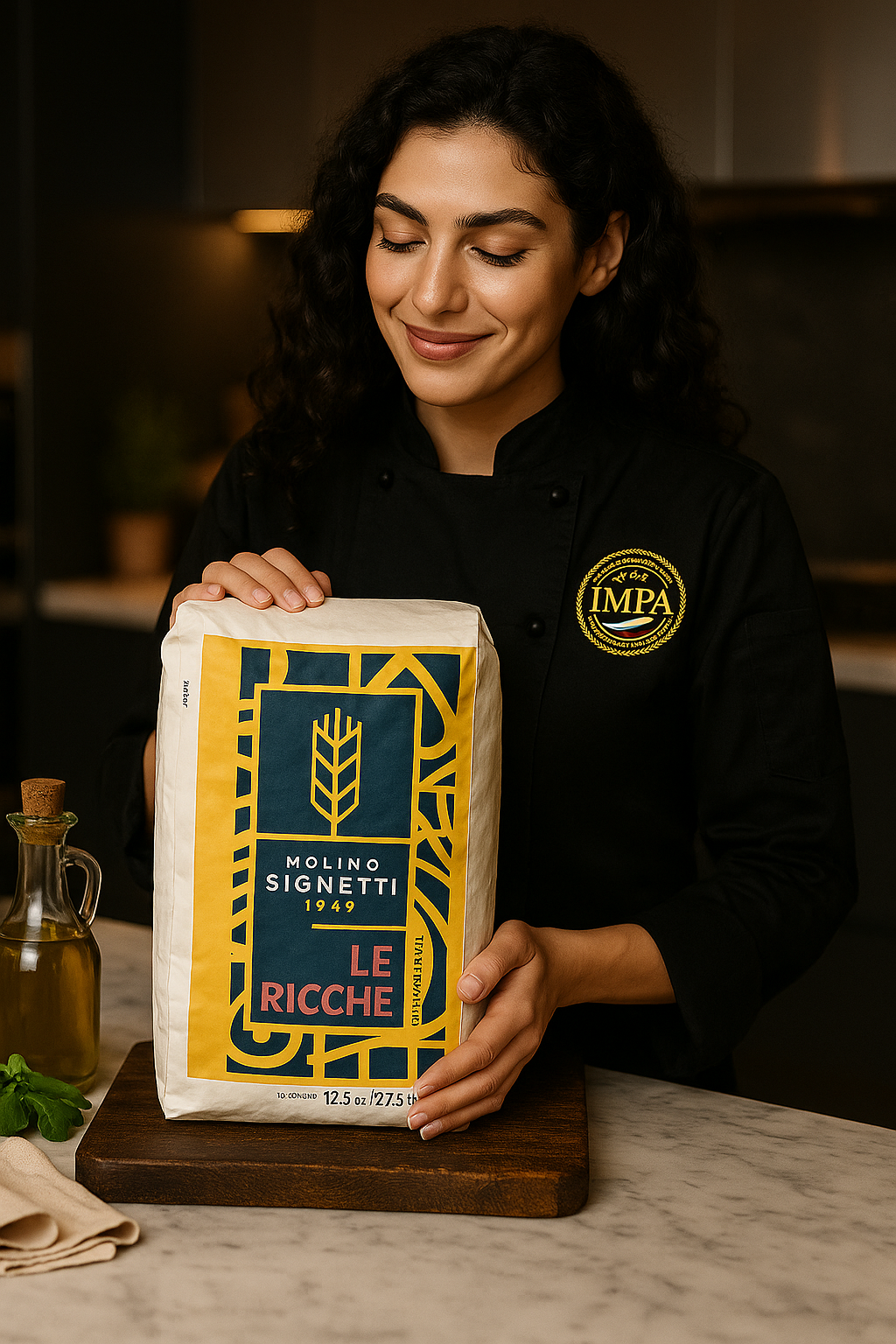 La Farine Tipo 1 – Le Ricche est une farine plus complète, contenant une part du germe et de l’enveloppe du blé. Elle permet de réaliser des pains et pizzas plus nutritifs, riches en arômes et en fibres, avec une belle croûte rustique.